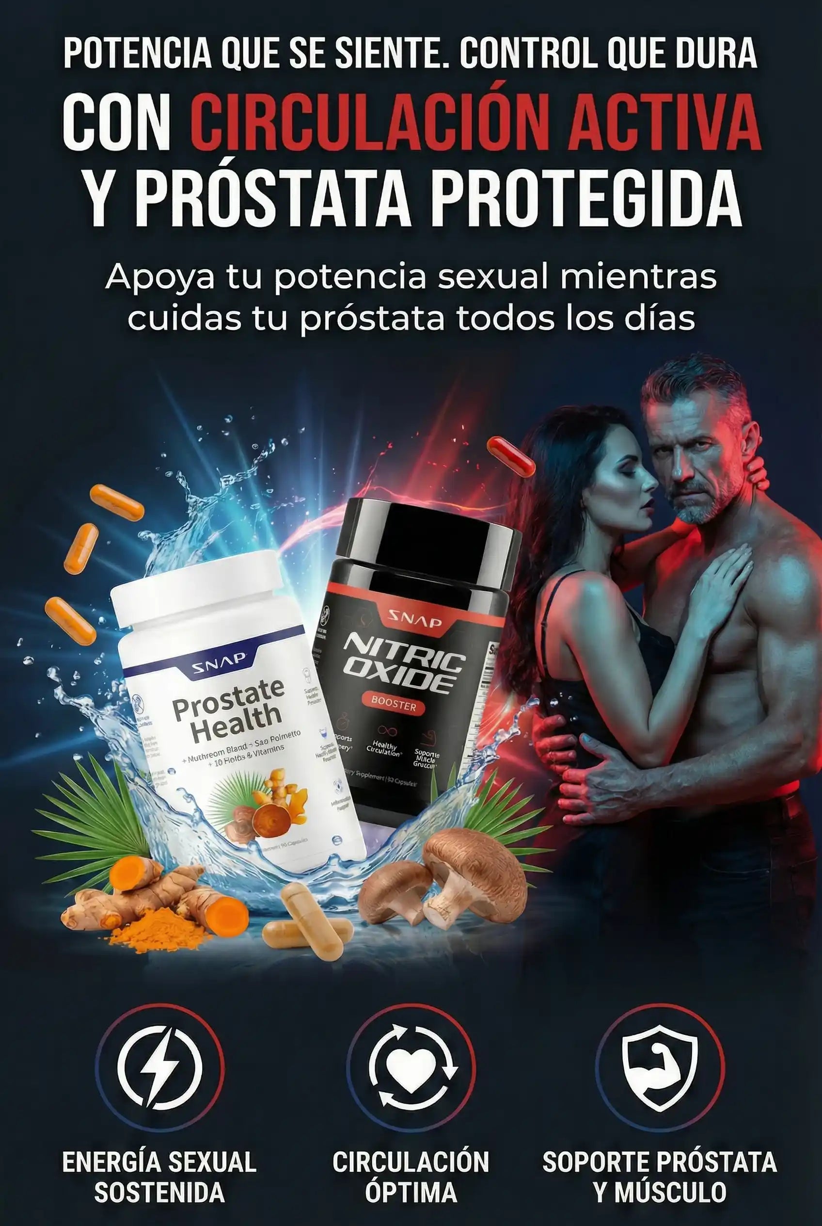Es circulación activa + próstata protegida, trabajando juntas para que disfrutes erecciones más firmes, mayor resistencia y tranquilidad íntima.